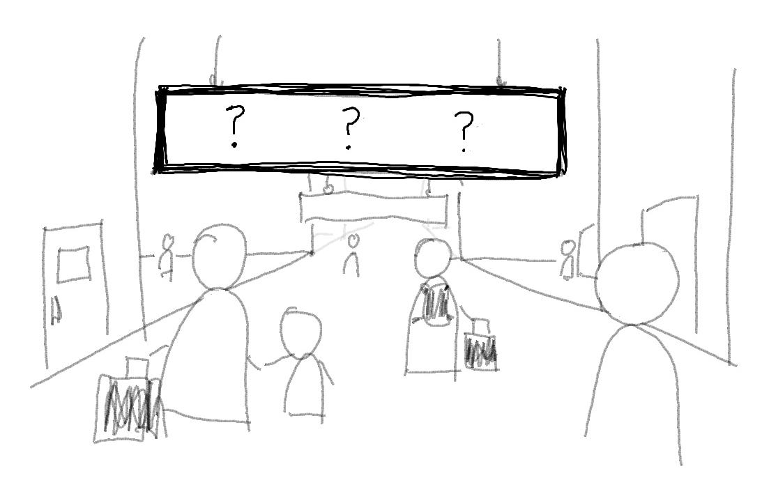 Third, the options should be mutually exclusive. There are lots of kinds of transportation options around an airport. Can you imagine if the sign just said “Go places”? Like…on a plane? Then you’re looking for your departure gate. Somewhere in your destination city? Then you want the bus, or tram, or the curbside spot where your friend can pick you up.